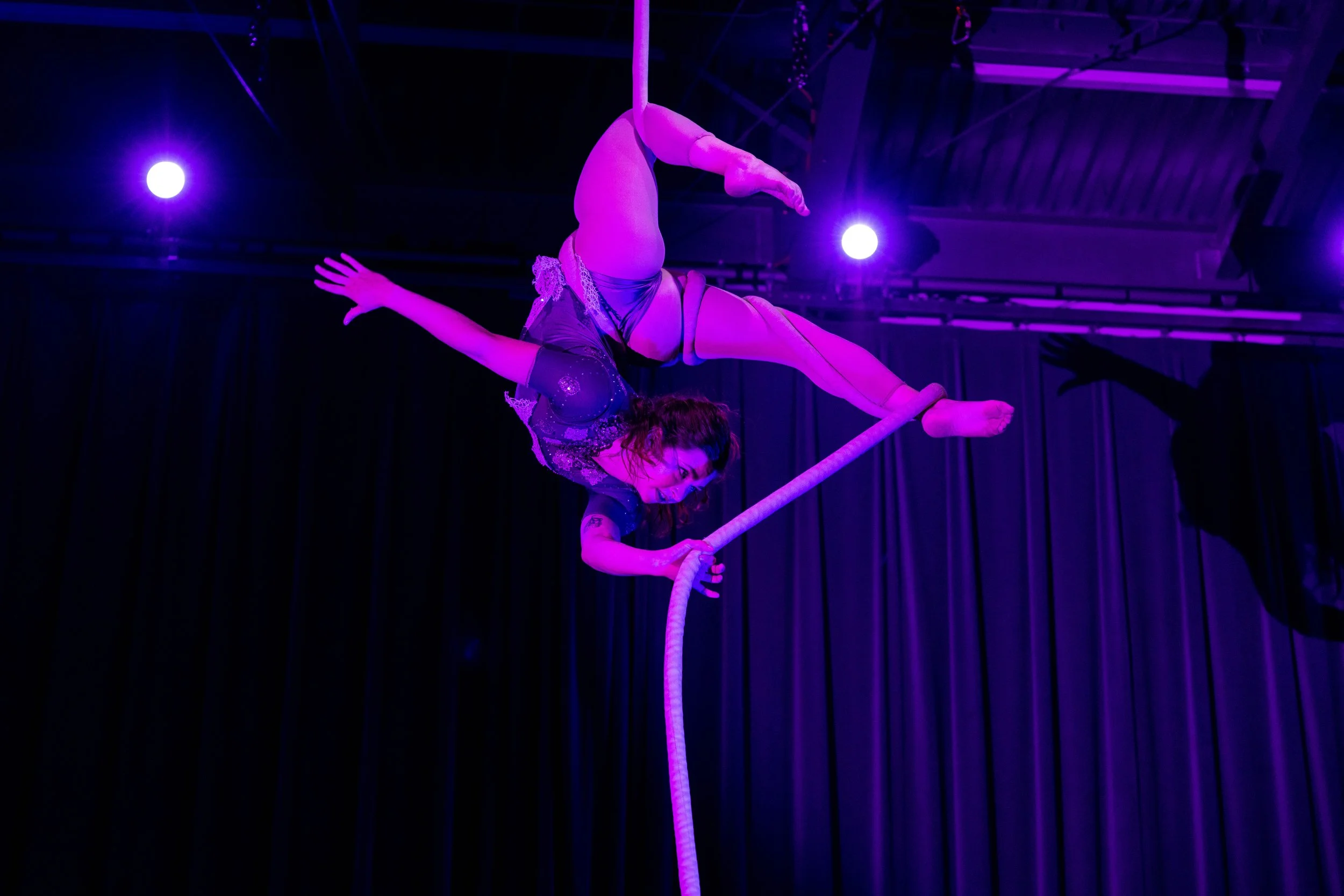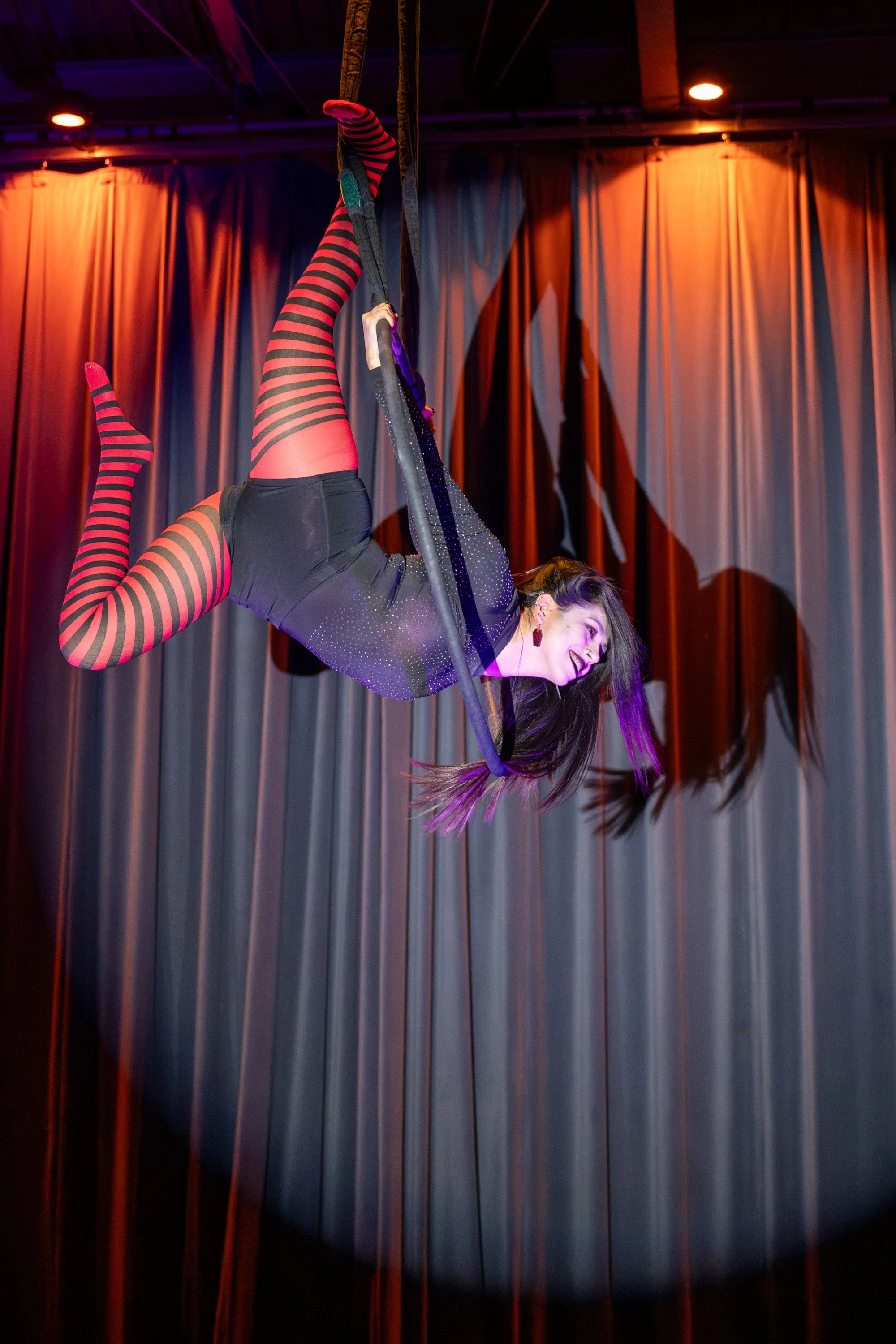 Our next performer spotlight is Jasmine, a Brazilian jiu-jitsu practicing, horseback riding, sling queen who has now been studying aerial arts for 5 years. She loves to find the artistry within the technique to create mesmerizing sequences and her happy place by far is when she is flying through the air. So Wake Up as she Brings You to Life, because you won't want to miss this special performance.
