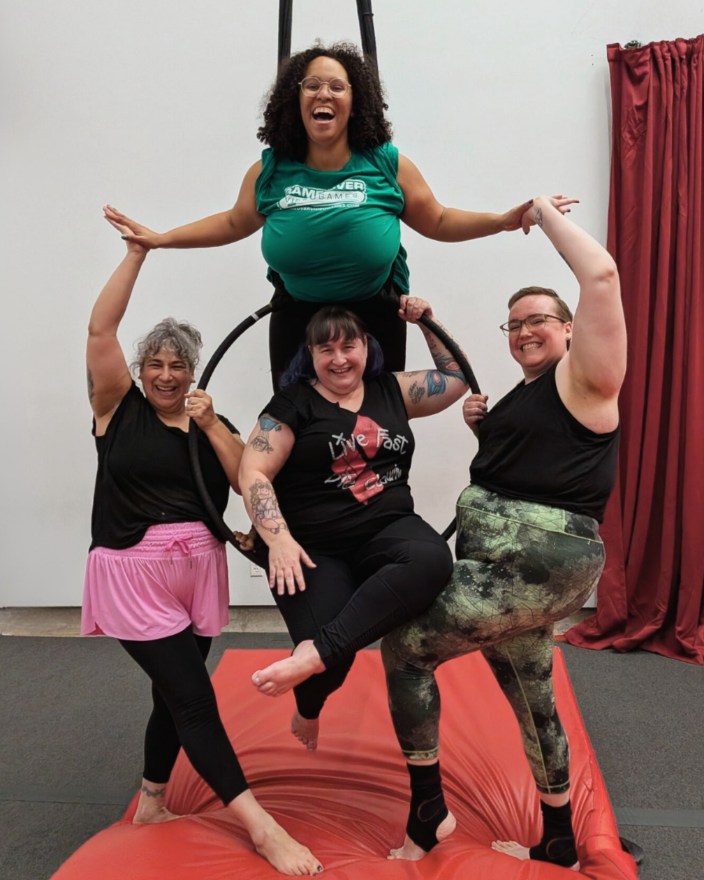 At Sky Candy, we believe that Circus is for Every Body, and we welcome all bodies into any of our classes. We also recognize that fat folx deal with systemic oppression that may include trauma around fitness classes or movement practices. We offer the following classes taught by fat teachers who combine their years of study and practice with the lived experience of existing in a larger body.